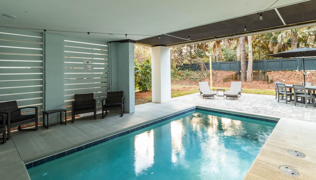 Centrally located in HHI just within the gates of Sea Pines, with golf simulator, outdoor putting green, 2 game rooms, and a backyard area with games, outdoor dining, fire table & lounging areas, this home is a one-of-a-kind experience. Sleeping up to 10 guests (2 king beds and 4 double beds), this luxurious space will offer unparalleled comfort, amenities, and the perfect location for you to use as your central base to enjoy the best of Hilton Head Island.