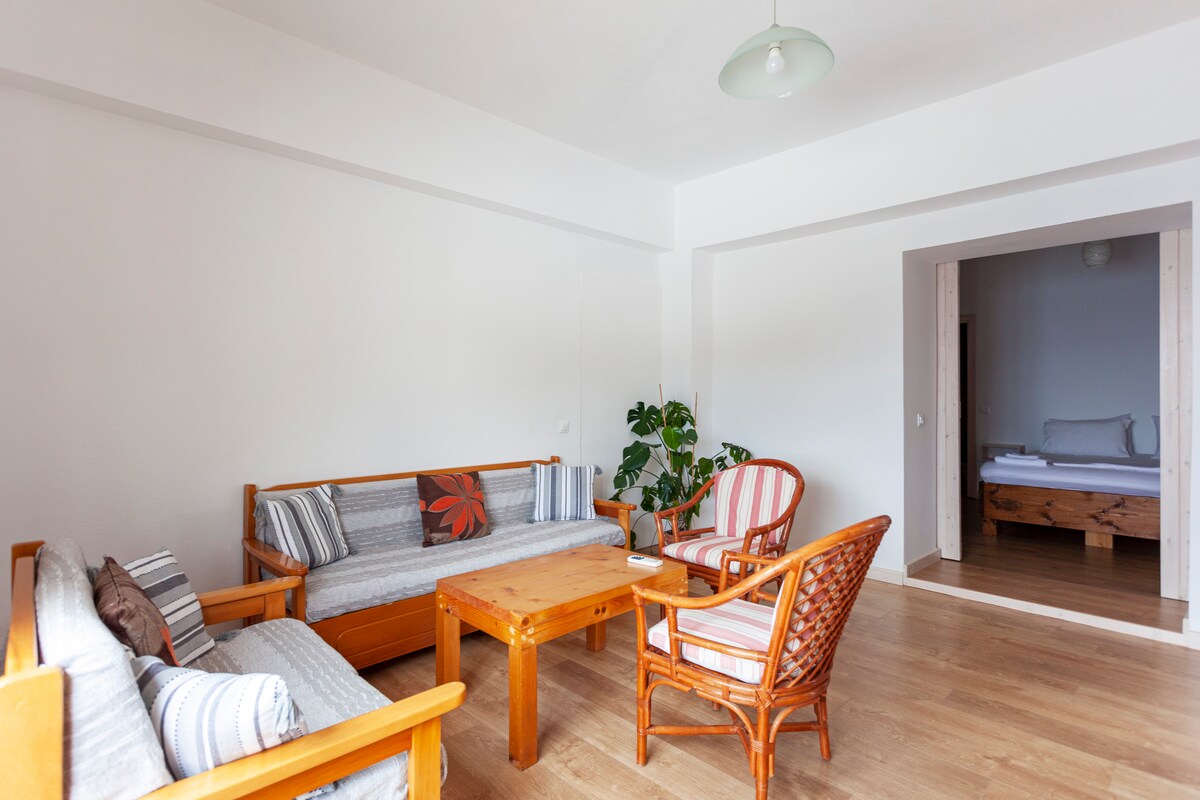 Fully equipped rooms just 5' far from the beach , shops and restaurants . Private kitchen,bathroom and big balcony. Has amazing sea view but also mountain. Located in a peaceful neighborhood in the center of the city and at the same time far from the noise of the car. It's an ideal place for couples and families. The access to the apartment is through stairs as there are only very small streets around. It's a ideal place for relaxing holiday!!!