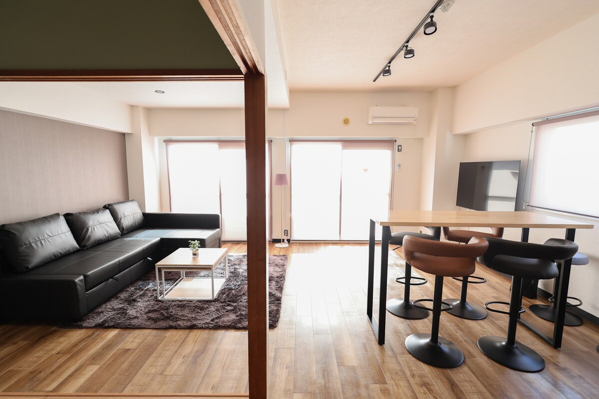 Conveniently located 6 minutes on foot from Hiroshima Station. "Stay like you live" Please enjoy a hotel-like time where you can feel an extraordinary atmosphere. This is a unique room on the top floor in the southeast corner. ■ Room size: about 60 m² ■ Bedding 1 queen size bed 1 sofa bed (* for 2 people) 3 single futons ■ Location About a 5-minute walk from JR Hiroshima Station ・ Youme Mart (supermarket) 3-minute walk ・ 7-Eleven (convenience store) 3-minute walk There are many different restaurants around the facility. Each room has a washing machine and a spacious kitchen, It is easy to spend short or long term. We also provide WiFi and content such as YouTube, so please feel free to use them. Guests can access the room themselves, It is a self check-in and self check-out method. After booking, we will explain how to access/check in in an easy-to-understand way, We will guide you with photos and text. This is a place where the whole family or group can enjoy themselves individually or together in one space. Please come.