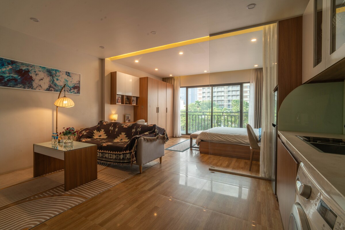 💙Welcome to you. 🌇The building is located in the quiet West Lake area, filled with natural light. Modern design, spacious space, suitable for remote working/long-term stay. ✨Amenities: 2 desks, soft sofa, Smart TV, high-quality mattress, large wardrobe, dressing table, hair dryer. 🍽 Convenient kitchen: Fully equipped with appliances, washer/dryer and range hood. 🌍Ideal location: Ideal place to exercise, relax. 10 minutes to Old Quarter, close to amenities, restaurants, cafes.