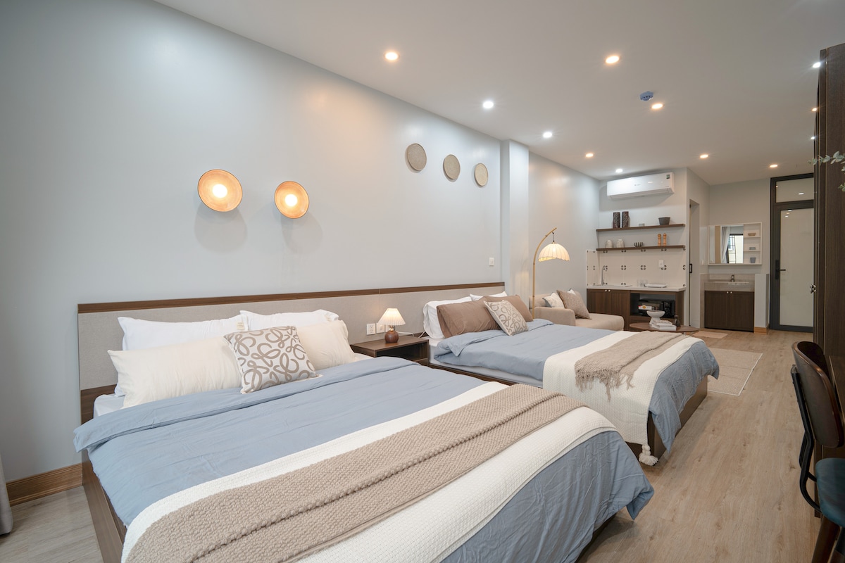Experience the allure of our newly renovated 2-bedroom apartment on the top floor, tucked in the lively heart of Hanoi’s Old Quarter. This cozy retreat seamlessly combines classic Hanoi architecture with modern comforts. A must-try experience for anyone seeking the perfect blend of tradition and style! ✦ Complimentary fruits in room ✦ Quiet & secure/ no club surrounded / Hang Than Market- 2 mins walk Hoan Kiem Lake - 10 mins Night market- 15 mins walk Ho Truc Bach- 12 mins walk
