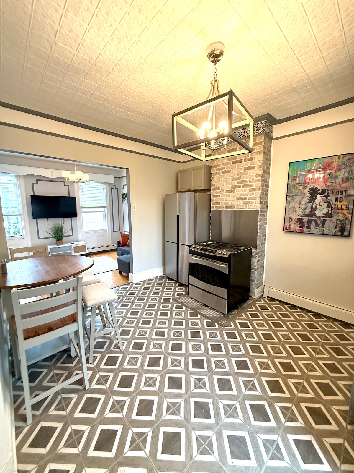 This charming and carefully restored 1901 brick row house apartment is perfectly located on a tree-lined street in downtown Hoboken. Featuring your own private keyless entry, spacious layout with designer touches, fully equipped kitchen, private patio, and modern amenities such Wi-Fi, Alexa, and smart TV. If you are looking for a short getaway and appreciate upscale style, this is the perfect place to relax and refresh. For extended stays, settle in & experience your new home away from home.
