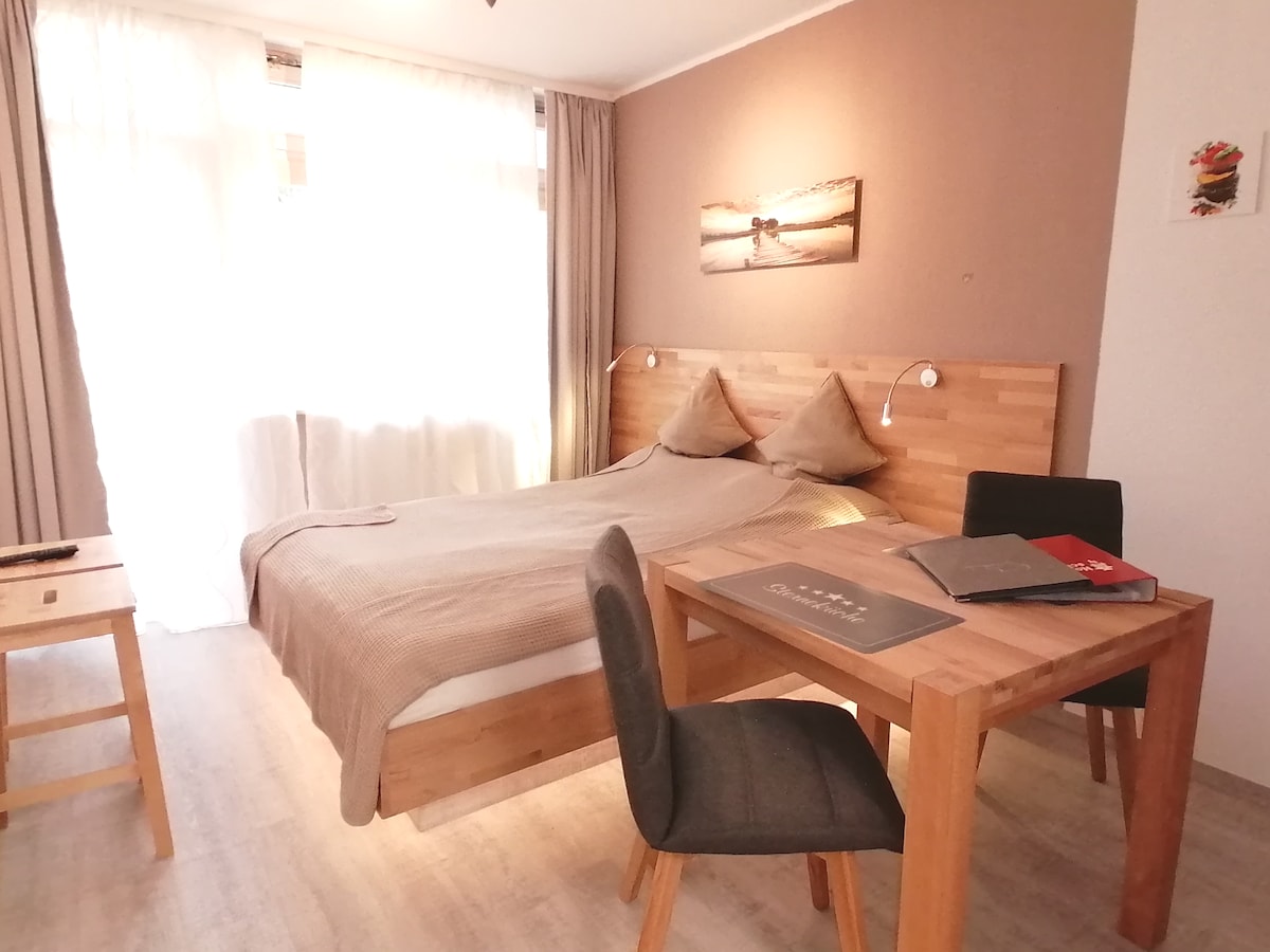We welcome you to our lovingly furnished apartment. The 36 m² can accommodate up to 3 people. An extra bedroom with a large bed offers plenty of privacy. There is a comfortable sofa bed in the living room. The apartment is fully equipped with a kitchen, 2 bathrooms and TV to feel comfortable. There is also an indoor swimming pool in the house, which is currently closed for renovation. You can park your vehicle directly at the house free of charge.
