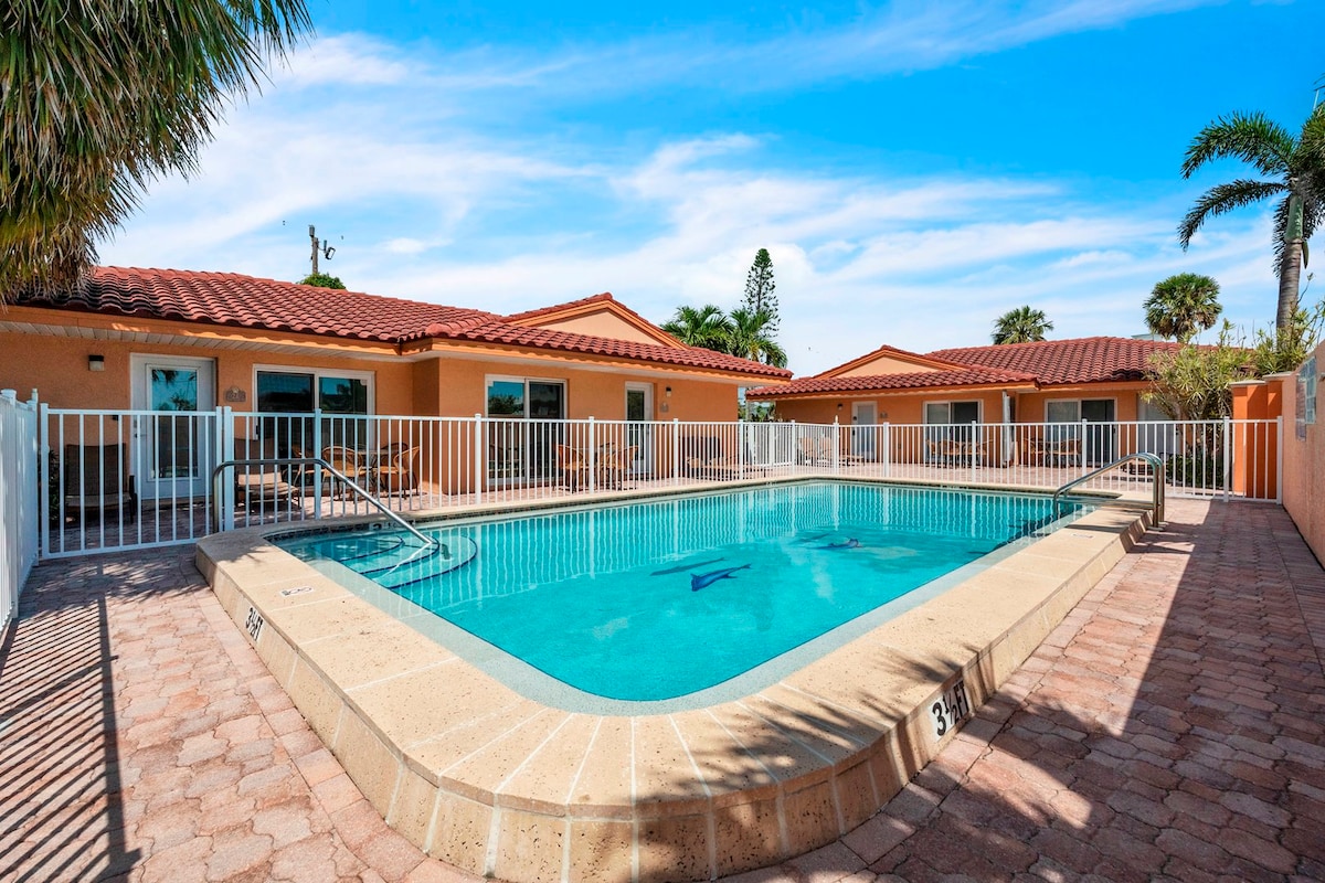Perfect place to put your feet up and relax! One of four units in the condo gives your getaway a private feeling where you don't share the heated pool with many others, on a dead end road. The only unit overlooking the pool from the master bedroom. You'll be just one block from the beach making it tempting to go multiple times a day! The clean, modern decor makes it a great place for both short and long term visitors. Just a nature trail away from a grocery store, shops and restaurants.
