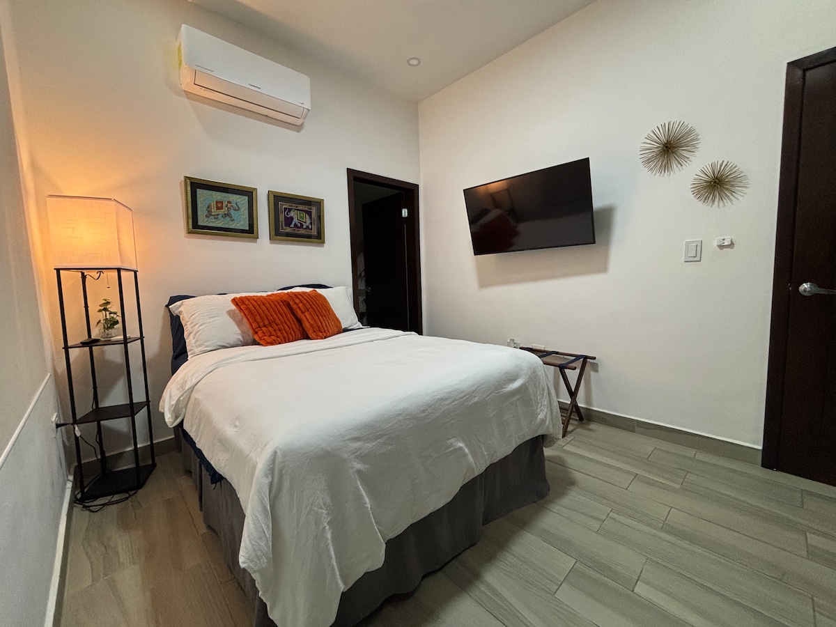 You’ll love this place because of its location, near the exclusive Intercontinental Hotel. It is located in a nice safe neighborhood within walking distance to Multiplaza, one of the best shopping centers in town with shops, restaurants, coffee shops, banks, and movie theaters. You will have a quiet place with spacious rooms, a dedicated kitchen and laundry areas, with good internet connection to get your work done, stay updated with your social networks and overall enjoy solo or family time.