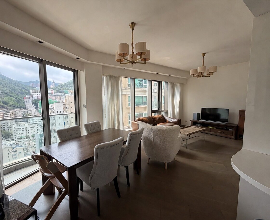 A high rise apartment with balcony & mountain View, in a modern residential property with great facilities, indoor pool (closed seasonally), gym. Fully furnished with a modern kitchen equipment, a luxury bathroom with Italian shower and tv screen. A smart TV in the living room and 4 seats dining table. The location is a perfect compromise between the calm and the lively areas where you will find great restaurants around. 5 min walk from Wanchai mtr, access to hiking trails of HK island.