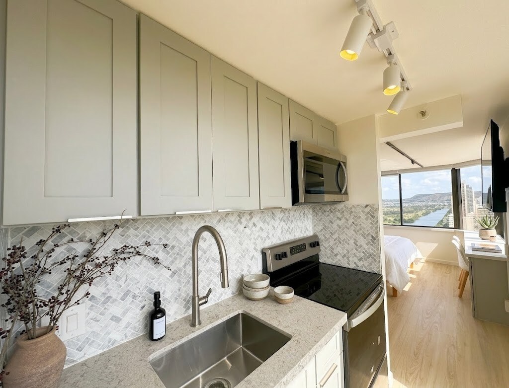 This modern studio was personally renovated and designed to be my home while in Hawaii - prioritizing quality, function, and comfort. - Unbeatable location! Steps to Waikiki, Ala Moana Beach, and Ala Moana Mall - Newly renovated and designed - High speed internet + WIFI (for those living that remote life!) - Parking available ($32/night - this is cheap for Waikiki) - Laundry room right next to the unit (accessible via app)