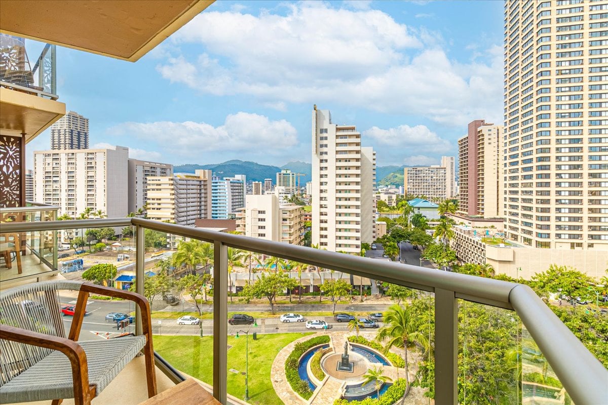 Newly renovated 1-bedroom with stunning panoramic ocean views! Enjoy an open concept layout with a king bed, full-size appliances, and a sofa bed in the living room. Features include central AC, fast WiFi, TVs in both rooms, and a large pocket door for privacy. A Juliet balcony to take in the ocean view including the Friday night fireworks. Walk to Ala Moana Mall, Hilton Hotel, and Duke’s Lagoon plus more Garage parking available for $33 a night 24/7 security, laundry room in building