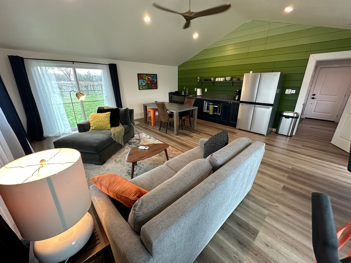 Our open plan cottage studio has lovely views of our walnut orchard, historic barn and fields. Enjoy sunset over the neighboring vineyards from your private deck. We are a mile down the road from a lovely State park, that is if you ever want to leave our tranquil little farm. Also nearby are wineries, hiking trails up a dormant volcano, and California's largest and oldest lake. Our farm is featured in the September 2022 issue of Sunset magazine. Check it out!