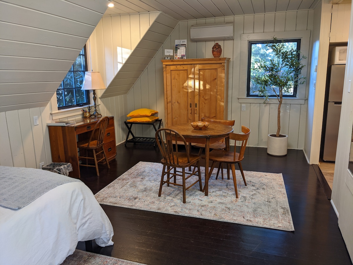 This peaceful 3-room studio is located on a quiet street in Ukiah's historic Westside. The "Penthouse" is just blocks from downtown shopping, restaurants, brewery, courthouse, Farmer's Market, three gyms, and the Renaissance Market. Wineries and redwood forest hikes are just minutes away. The studio has a kitchen, bathroom, and a combined bedroom/dining/work area with blackout curtains to keep the space comfortable for those who want to sleep in. Wifi is 400 Mbps. Host pays 100% of Airbnb fees.