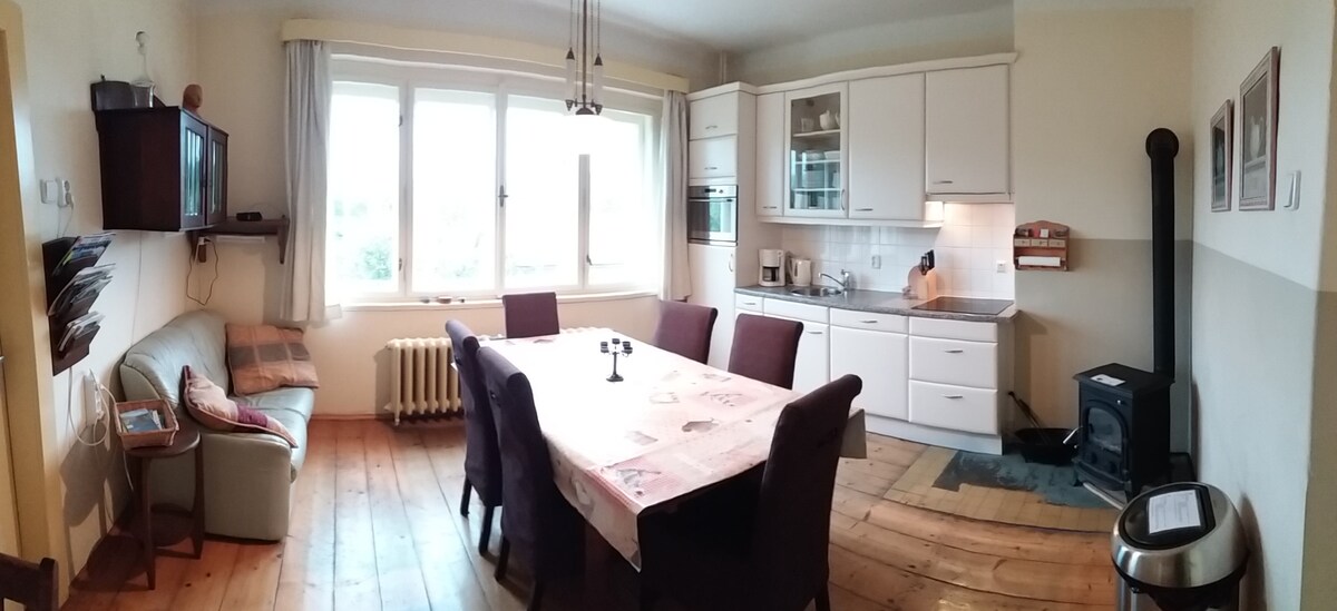 The cottage is located in a secluded area in the protective zone of the Krkonoše National Park. It was built in 1936 and it's partially renovated. There can accommodate 8 people. The whole house is at your disposal. The price includes wood for heating, electricity, cleaning, bedding, towels, tea, coffee and the city fee. Pets are welcome for a fee of 150 CZK/night, payable during your stay. Access is uphill via a forest road. At the winter time we park 450m below the hill.