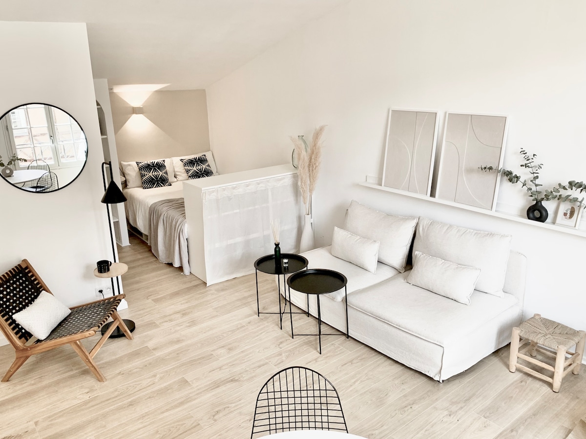 You are welcome in my beautiful 1 bedroom flat typically "Bordeaux style" with its limestone wall and its extravagant marble fireplace. Full of character, very clean, comfortable and light, it has the best location in the most charming part of the old city-center. Easy access by foot to all places in the city center. The apartment is on the 1st floor (without lift) of a 19th century building. There is a PUBLIC CAR PARK (NOT FREE) called "Camille Julian" at 20 m away from the building.