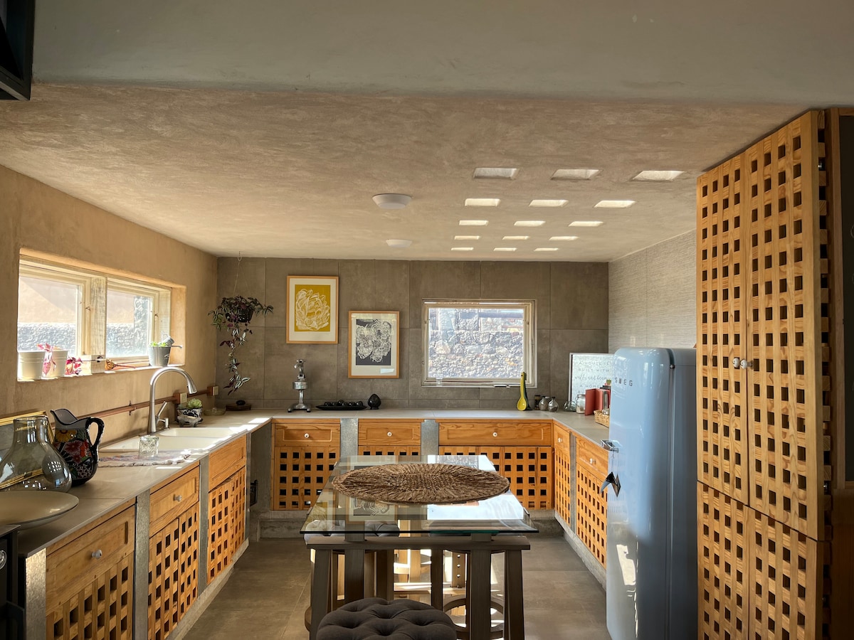 A RUSTIC-CONTEMPORARY DESIGN COUNTRY HOUSE WITH A PANORAMIC VIEW. LOCATED 10 MIN. WALKING FROM THE CENTER OF HUASCA. CENTRAL POINT TO THE PRISMS, THE TROUT, THE CENTER OF HUASCA AND THE HACIENDA OF SAN MIGUEL REGLA ENJOY A DAY OF RELAXATION IN THE MIDST OF NATURE, GRILLING MEAT, PLAYING PING-PONG, SOCIALIZING WITH YOUR FRIENDS OUTSIDE BY THE CAMPFIRE OR INSIDE BY THE FIREPLACE. IT OFFERS YOU WIFI- SKY TV - HOT WATER - EQUIPPED KITCHEN-RAMPS FOR PEOPLE WITH DIFFERENT - PET FRIENDLY OUTSIDE.