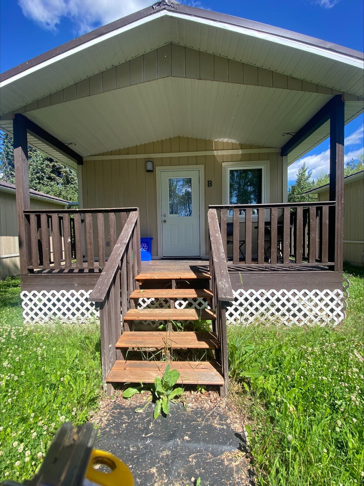 If you are visiting or working near Moberly Lake, rent the upper lodge unit! The living area boasts amazing views of the lake! Add a hot chocolate or glass of wine and watch the eagles or waves melt the stress melt away! Minimal light pollution lets you to gaze at the northern lights from the living room. The lodge has a kitchen with a fridge, oven, microwave and washer/dryer. The 1 bedroom unit has no sofa bed. The bistro set facing the hill is at the front door. This unit is pet friendly.