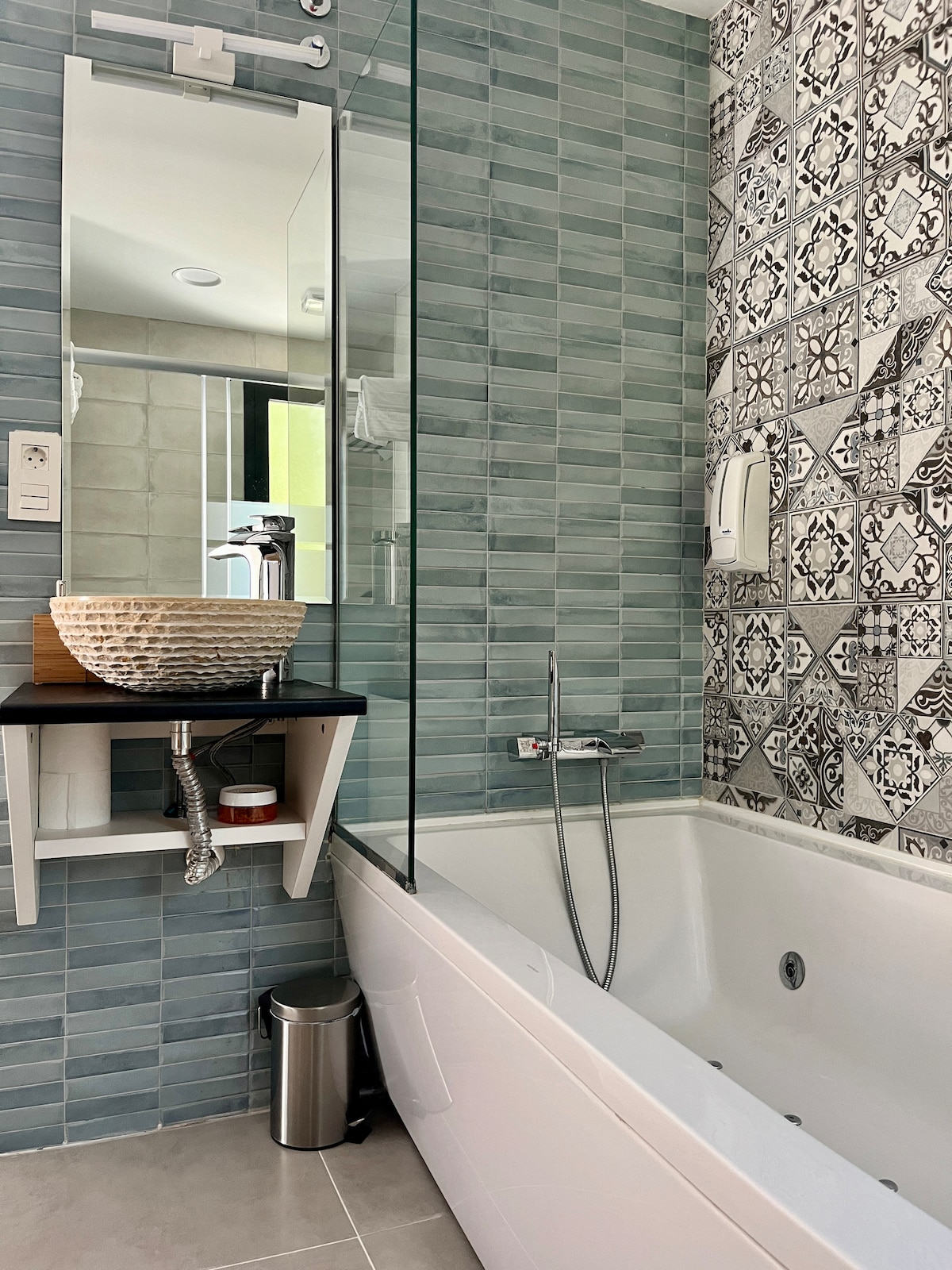 Room with a hydromassage bathtub