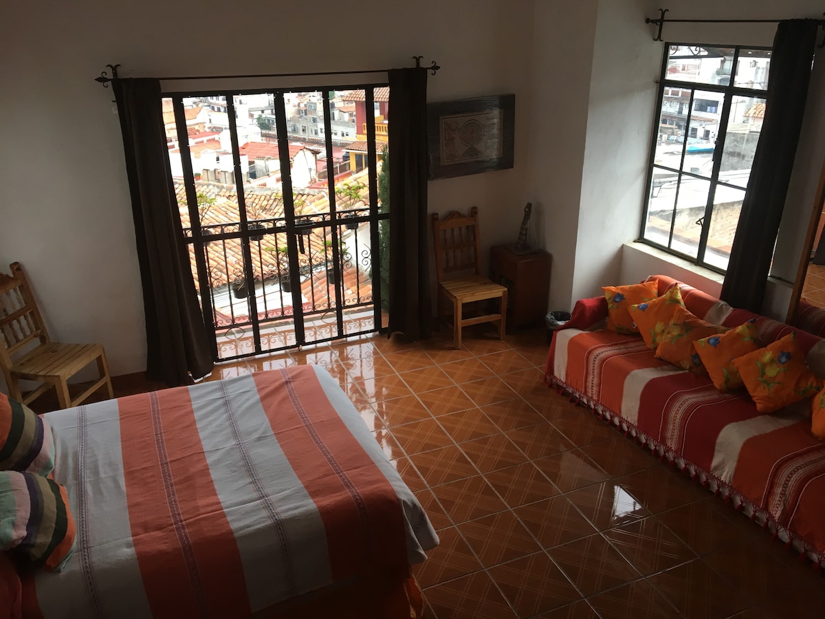 In the historic center, quiet accommodation in the first block of the city, ideal to have a good rest, delight in the colorful sunrises offered by the beautiful view towards the mountains, around emblematic churches of our city, parks, craft shops, silverware, museums, market and a variety of restaurants without having to take your car to enjoy a walk discovering beautiful alleys, feel at home.
