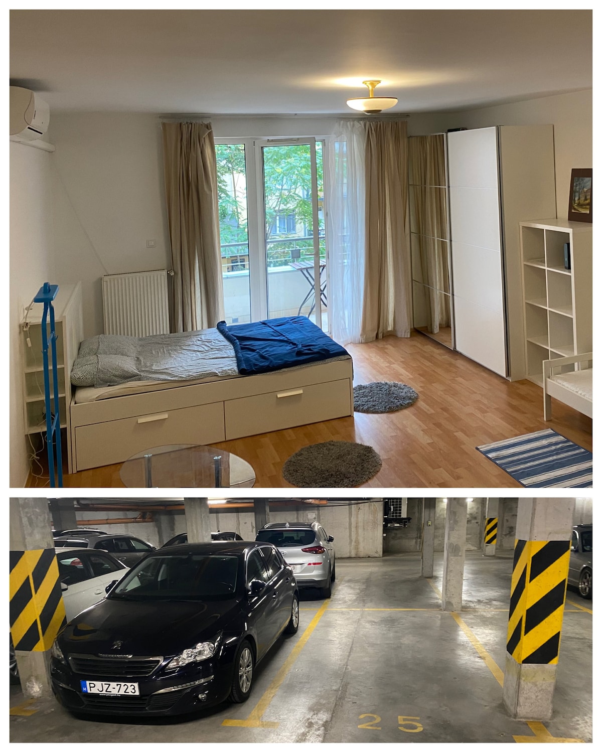 *FREE PARKING IN GARAGE *NICE BALCONY The apartment is located in one of the most popular locations, on Corvin Promenade, in the city centre, next to restaurants, cafes, shopping centre, a few minutes from the metro/tram, which provides quick access to all the attractions. The Danube is 20 mins walking distance. The modern bright apartment is furnished with all the necessary amenities, and the cosy balcony is the best place for your morning coffee. Free garage parking is available for your car.