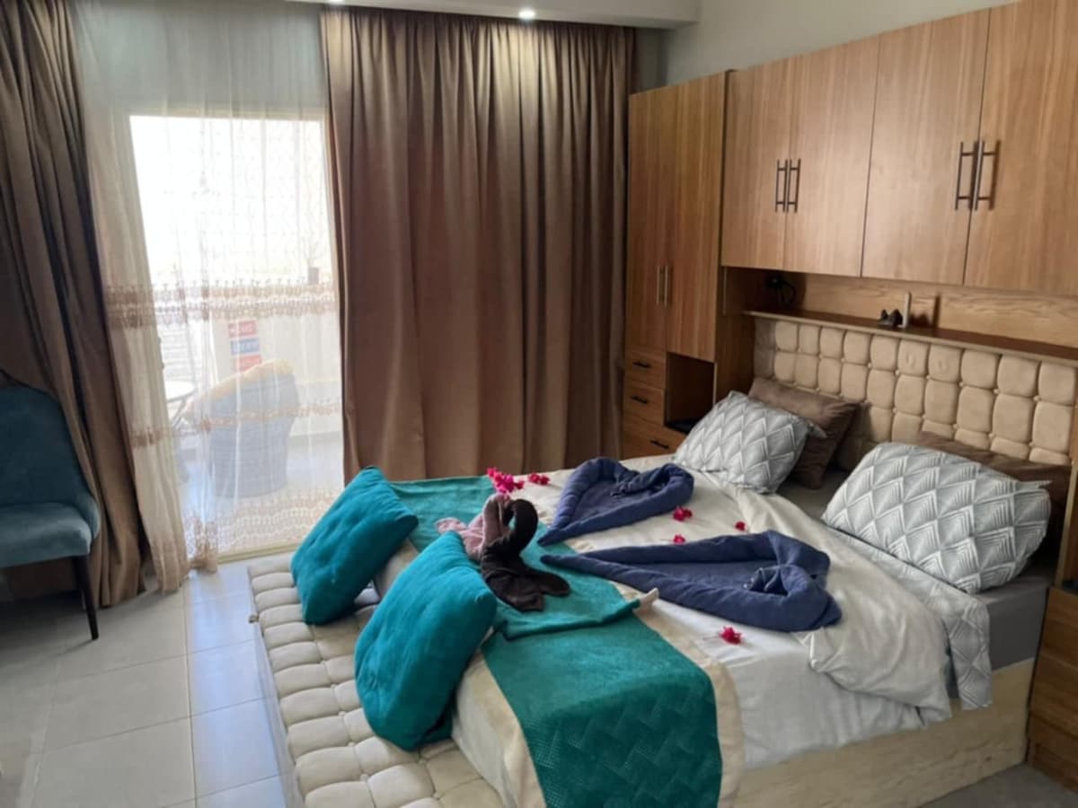 Brand new studio with cozy interior modern furniture , huge balcony and private sandy beach, available 3 pools, sport court . The resort is 10 minutes from Hurghada city center and 10 minutes from Hurghada marina, the airport is 15 minutes far away. Golden beaches and guaranteed sunshine are what made Hurghada famous to spend your holiday. The colourful reefs, amazing corals and tropical fish are among the finest in the world. Your perfect holiday by the sea and sunny weather all year