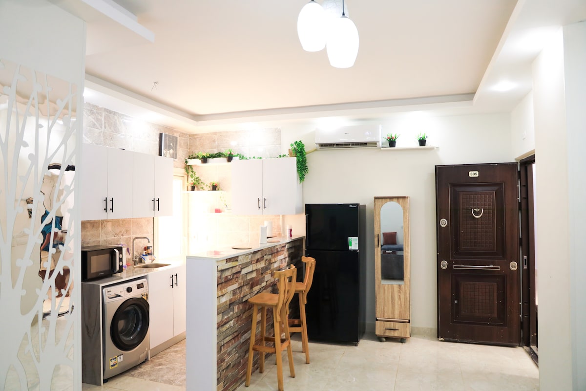 A cozy brand new apartment in Aldau heights, equipped with appliances, fits for 2-4 persons. A stylish experience at this centrally-located place. Steps away from popular restaurants and shops Luxurious amenities, including swimming pool Spacious bedrooms with ample storage space for your belongings" A modern and fully-equipped kitchen for cooking at home Open-concept kitchen and dining area, ideal for cooking and entertaining Well-appointed bathroom with modern fixtures