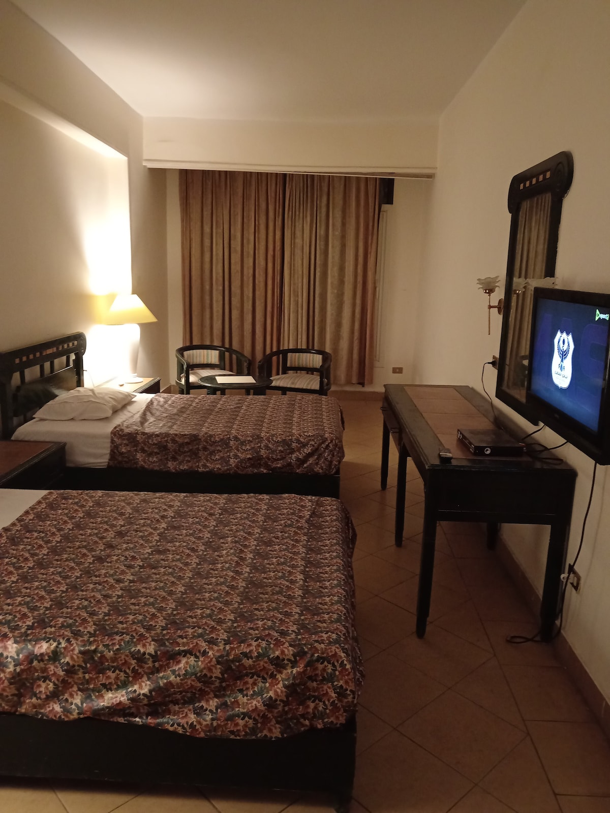 This Room is located in Panorama Bunglows resort 5 mins walk to downtown Gouna -Premium location- Your room has 1 king or 2 queen beds comfortable bed, 40 inches TV , big Bathroom and a nice Balcony.. Price includes COMPLEMENTARY Breakfast All inclusive bracelet includes: -Soft drinks and hot drinks all day from pool bar, beach bar and lobby bar - launch and dinner in Hotel main restaurant -Snacks on pool and beach