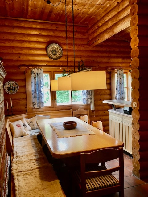 Ferienwohnung im Nebengebäude auf 2 Etagen. Eigener Eingang, Vorraum mit Garderobe und Sauna. Offenes Dachgeschoss mit Küche, Wohn- und Essbereich. In einer Nische ist ein Doppelbett(im Wohnraum) Chillen, Kamin, Fernseher! Terrasse: Sitzgruppe, Sonnenschirm, Gasgrill und Ausblick. +Schlafzimmer - Doppelbett, auf Wunsch Kinderbett. Badezimmer, Badewanne u. Dusche. Badeplatz 20m am Fluss - wenn der Wasserstand es zulässt. Loipe am Haus 15min Skigebiet, 5 See Wandern