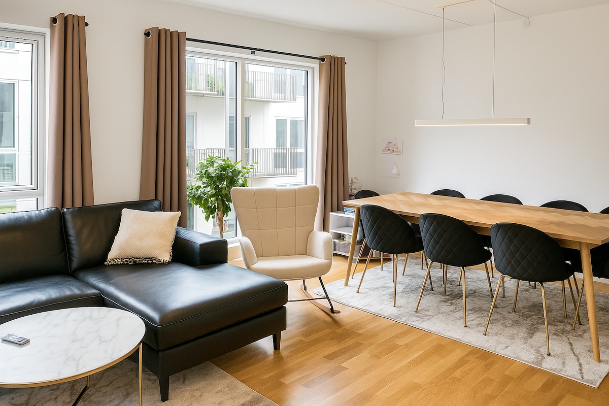 Enjoy a relaxing stay in this modern apartment located in a peaceful, green neighborhood just 25 minutes from central Copenhagen. The apartment has a balcony with views over the park, a bright bedroom, dining arena and a big bathroom. If you're more than two guests or wish to use the sofa bed, this can be arranged for an additional charge. You also have access to a shared terrace. The metro at Copenhagen Syd Station is just a short walk away, offering direct connections to the city center.
