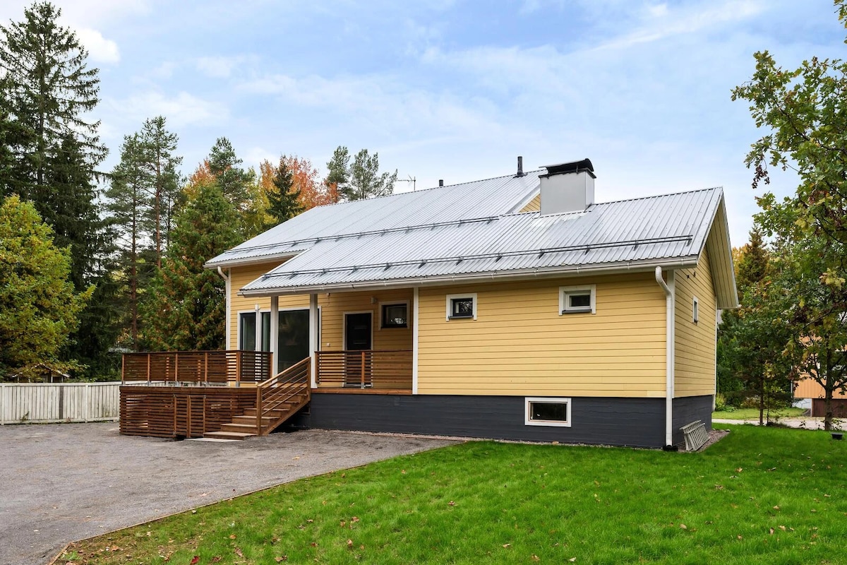 Enjoy your stay at our Scandinavian design home, which is built on two floors with a room height of over 4m. You'll live in a private apartment connected to our detached house. There is access available for a sauna & swimming pool area within the main house (for an extra cost). The house is located in the middle of Helsinki in a peaceful neighborhood (Oulunkylä). Excellent accessibility to both the city center and the airport by public transportation or your own car. Free street-parking