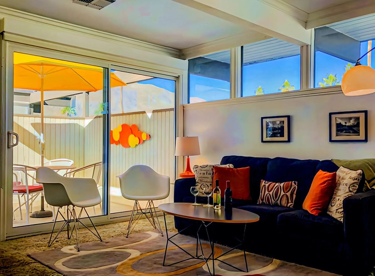 Live your best Palm Springs fantasy at our whimsical, light & airy mid-century bungalow. Located in the historical Ocotillo Lodge, our unit is one of a few exclusive bungalow suites, distinguished by its large west-facing, private patio. Enjoy modern amenities and take in the many stylized nods to Palm Springs' colorful history. Have a morning coffee in the light of the golden sunrise, or experience a magical sunset overlooking the San Jacinto Mountains. Our mid-century gem is yours to enjoy!
