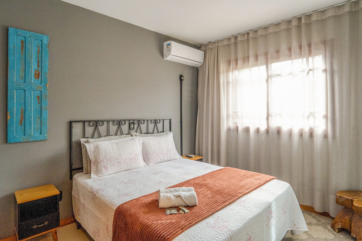 Keep it simple at this peaceful and centrally-located place, close to the bus station and downtown Bento Gonçalves. The apartment has a barbecue, a beautiful view of the city, a fully equipped kitchen and a gas shower.