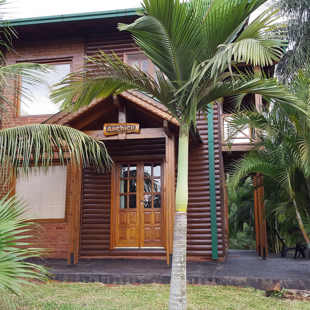 Wooden cabin with natural pool located in the Las Orquideas neighborhood, on a very quiet street surrounded by vegetation and birds. It has a room with a double bed and split air conditioning + 2 single beds, a full kitchen, wifi, and parking. 50 meters from Arroyo Mbocai.