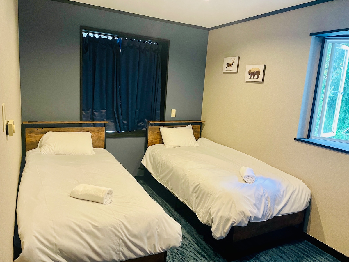 Welcome to Ember Lodge! Nestled 100m from the family friendly Goryu slopes & advanced terrain@47, our lodge offers warm rooms & inviting atmosphere. Floor heating, dry room & high-speed wifi. Perfect for families and groups. Easy access to all mountains in the valley via close 100m away shuttle. Cozy 2 single beds room with newly renovated ensuite bathroom. 12/1 - 3/31 breakfast included. [6+ Group Bookings / Full Lodge Rental Available] See our other listings or get in touch!