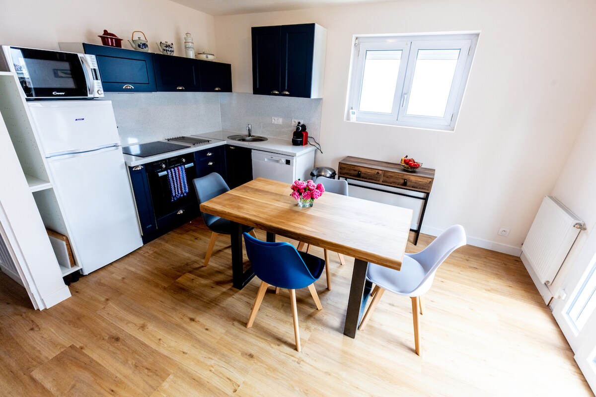 We offer you a 40 m2 apartment that we wanted to be welcoming and warm, with every comfort, by the sea. We hope that like us, you will enjoy the meals facing the estuary of the Pont l'Abbé River and the legendary sunsets. You can also enjoy the cale with its terraces and restaurants. For shellfish lovers, shore fishing is possible and an oyster farmer is nearby. Small market every Monday in season.