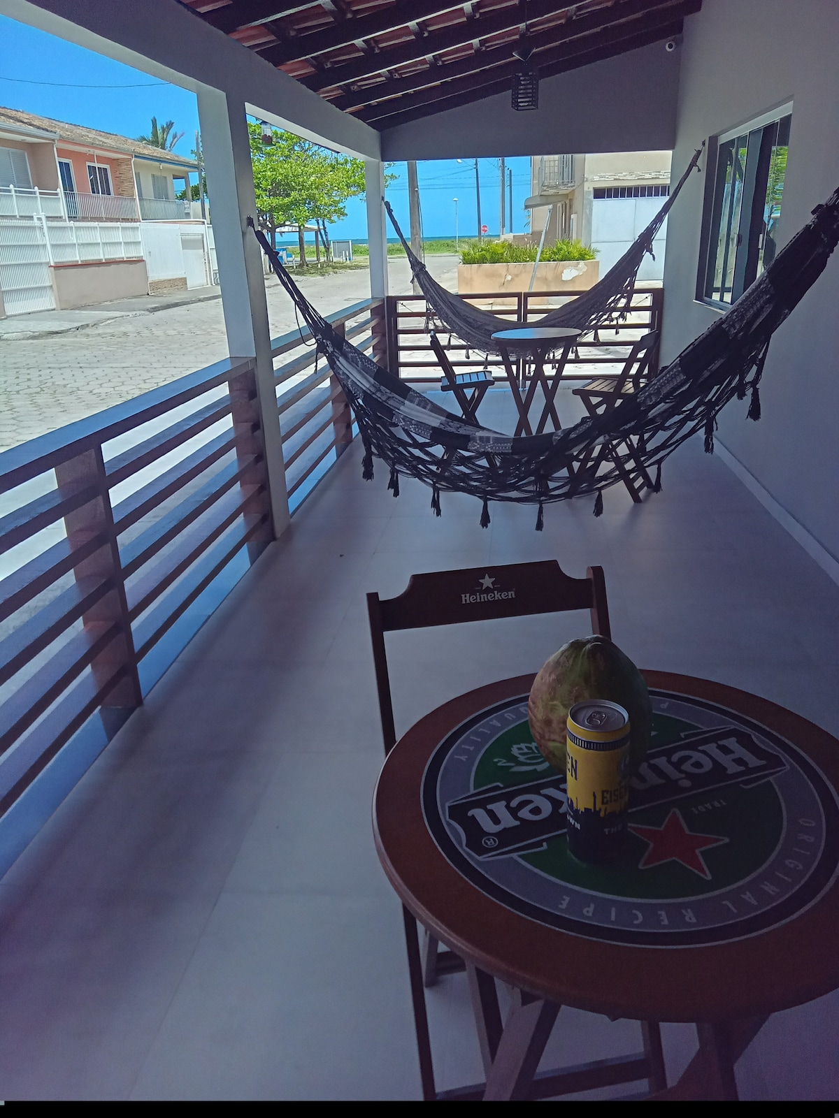 O Estúdio Surfe é um espaço organizado para fazer um churrasquinho ou um jantar depois daquele dia na praia, que fica bem na frente da propriedade. Também possui um terraço com vista panorâmica para o mar! ATENÇÃO: Não oferece roupas de cama e banho. Os travesseiros e colchões são ofertados com capas protetoras. Algumas áreas podem ser compartilhadas como os pátios, o terraço e as garagens. OBS: Possui 1 vaga de garagem. Oferece cadeiras de praia, cooler e carrinho de praia.
