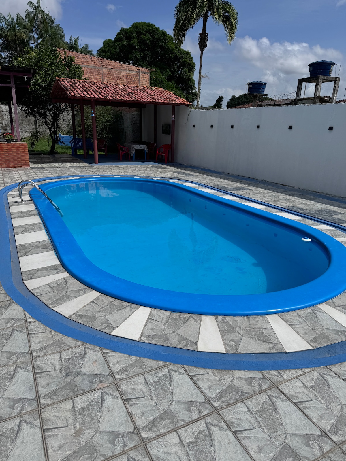 Sítio Bonanza, in Benfica, is a haven surrounded by green areas and acai trees. Approximately 30 km from Belém Airport, with fully paved access, it is the ideal place to rest, gather family and enjoy nature in comfort. In the property: * Wide porch * Living room with TV * Spacious and equipped kitchenette * 3 bedrooms (1 ensuite) * 2 Restroom bathrooms * 1 Lavabo * Private pool * Barbecue area * Hammock area * Spacious garden and backyard Nature and comfort for your family