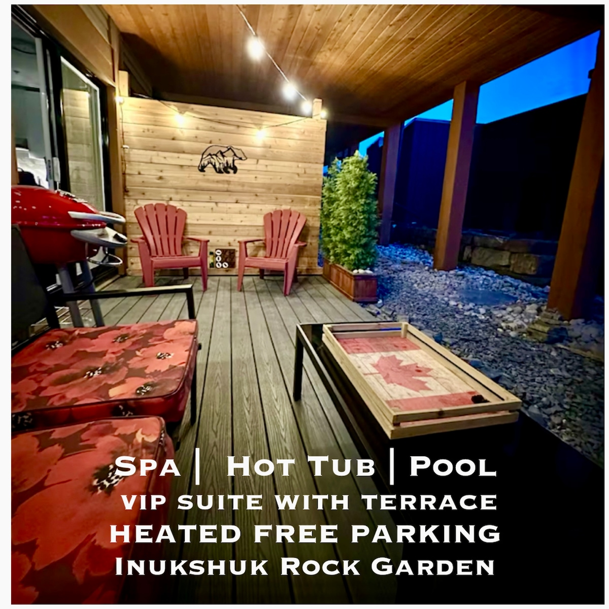 Relax, Rejuvenate & Recreate in this purpose-built, scenic suite. Enjoy the thoughtful interior amenities; heated bathroom tiles, Jotul gas fireplace and incredibly comfortable & cozy King bed. The suite's extra-large main window frames the majestic CDN Rocky Mountains, visible from bed, the sofa and granite bar counter. The private, rooftop moutain view deck is a micro-Nordic Spa with a cedar barrel wet sauna, cold plunge (non-winter), heated hammocks, sectional couch & firetable.