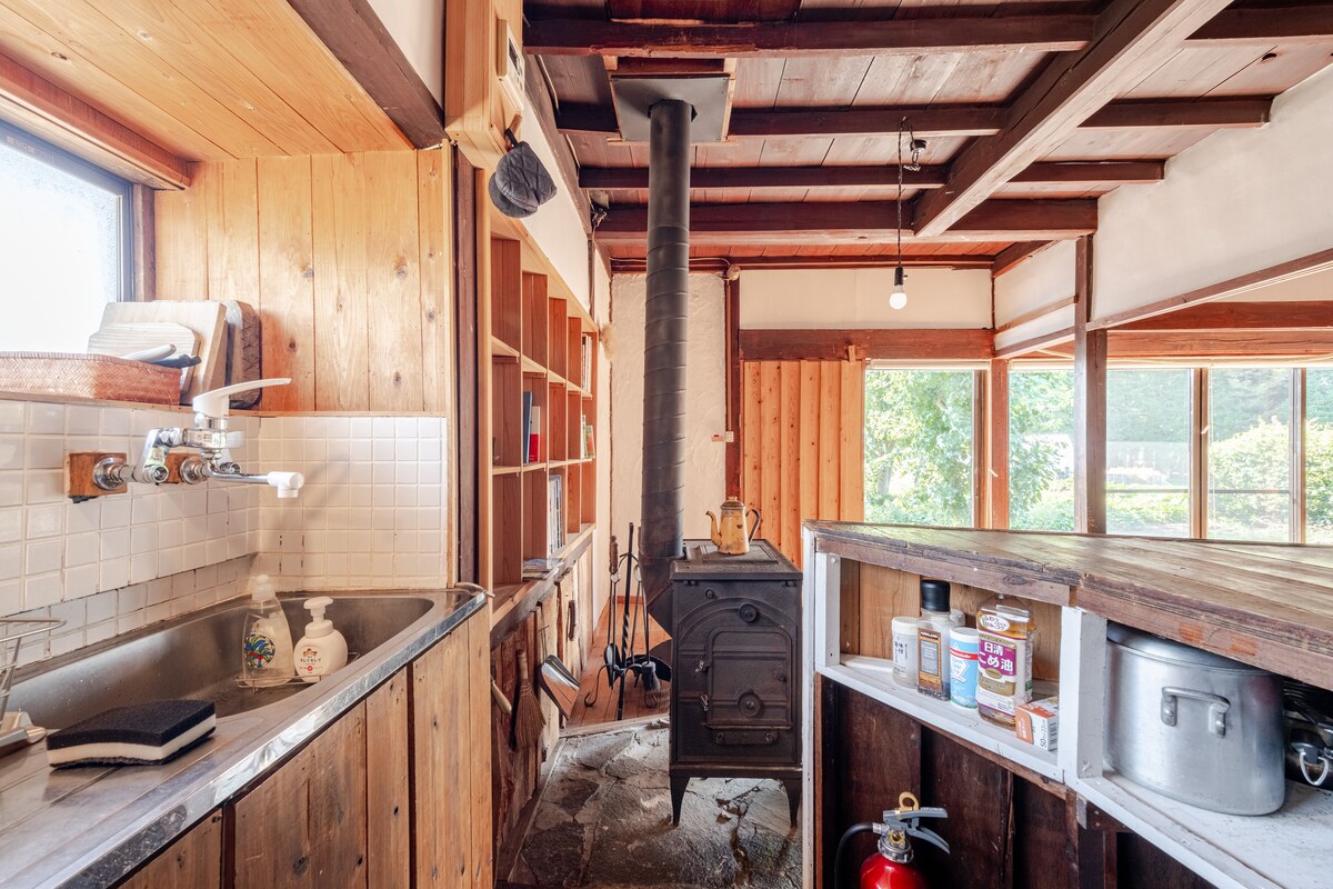 A quiet lodge in the woods with a wood-burning stove and BBQ grill at the southern foot of Yatsugatake