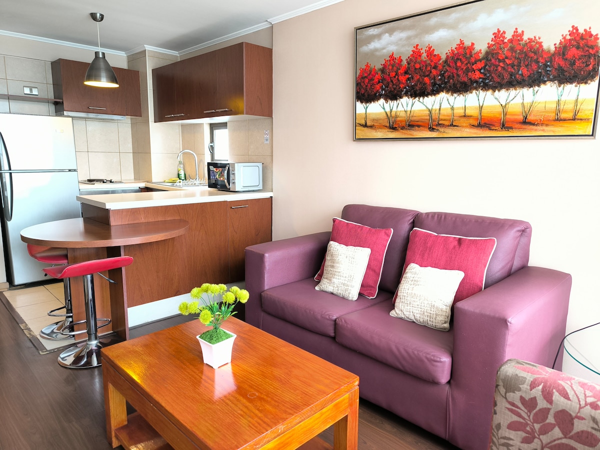 Modern and cosy apartment in the heart of Santiago. Steps from the subway and the Historic Center, surrounded by museums, markets and restaurants. King bed, equipped kitchen, balcony and fast WiFi, ideal for trips or long stays. Secure building with 24/7 concierge. Personalized attention, flexible check-in and local recommendations so you can enjoy the city like a resident, with comfort and peace of mind.