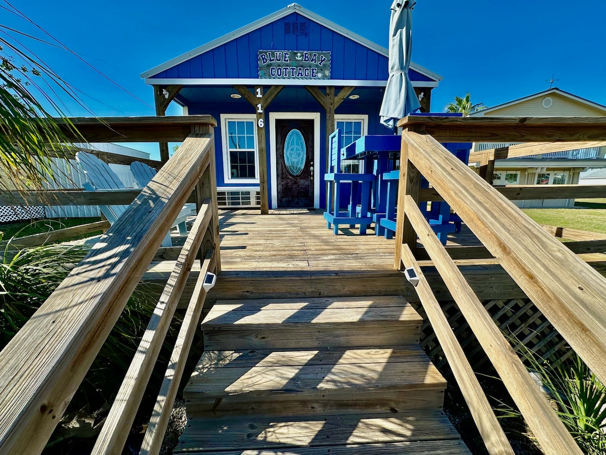 Welcome to the Blue Crab Cottage. Built in 2024, the Blue Crab Two replaces our beloved original Blue Crab. Your days will start with colorful Matagorda Bay sunrises and equally spectacular Powder horn Lake sunsets. The 360 degree views from the crow's-nest, are a favorite for bird and dolphin watching. Fish the bay out front or lake in the back. Just a few yards away, the Indianola Courthouse monument and Cistern monument are remainders of the catastrophic hurricanes of historic Indianola.