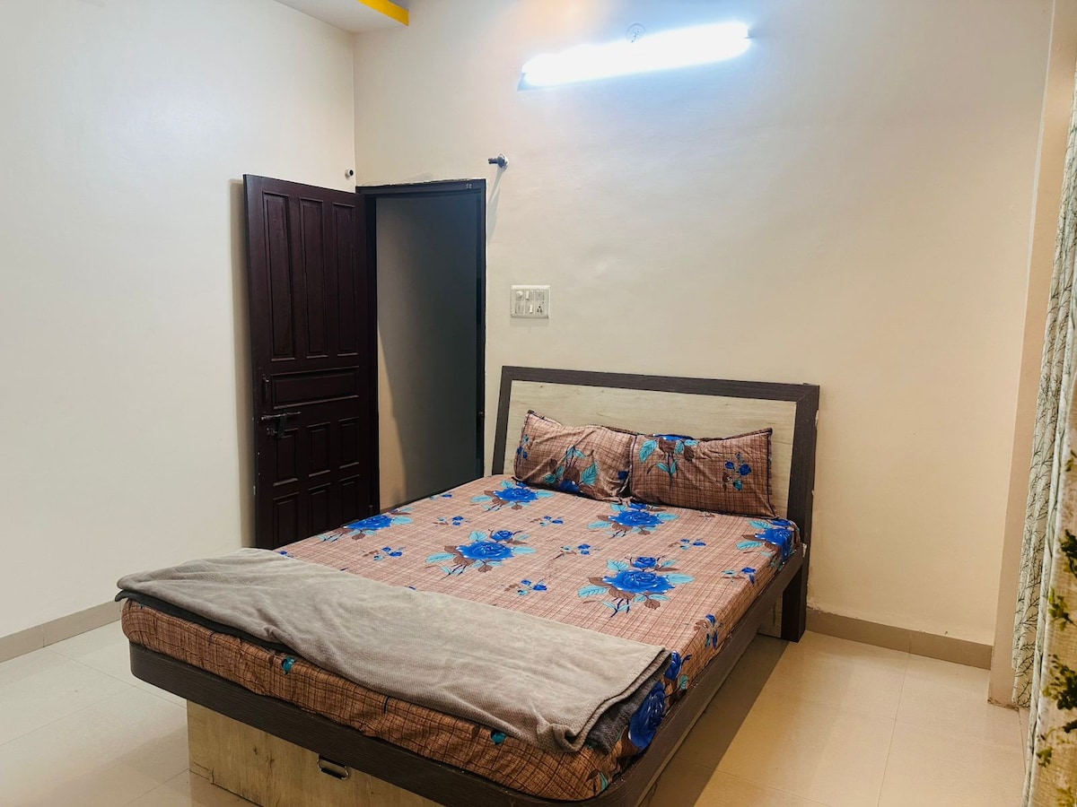 Welcome to M.P. tourism certified Homestay. Our cozy and luxurious abode, where warmth and comfort await!Our space is set apart by its perfect blend of modern amenities and homely charm.The homestay features two well-furnished AC bedrooms,each with an attached washroom,a kitchen-cum-living area with TV and a pleasant sit-out space in one room.The place offers abundant natural light. The fully equipped kitchen lets you prepare anything from a quick snack to a wholesome meal.Feel truly at home.