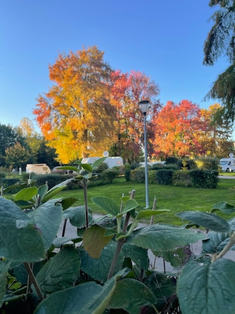 Quiet trailer, it is 30 min from Beauval Zoo ( 41), 8km from Chenonceau;18 min from Amboise. Consists of a dining area with microwave, a small stovetop, refrigerator, table, dishes, coffee maker, kettle... Bed for 2 people in 140. Coffee, tea, milk are provided. Bread and pastries are an extra 8 euros for 2 people. Exit the nearest highway 5 min, No. 11 in Bléré. 1 La Sourdière, Luzillé Green Portal