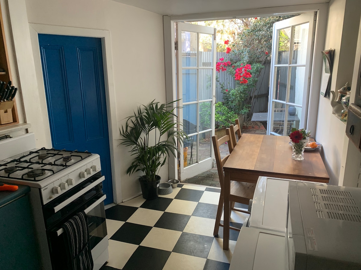 Eclectic inner city terrace house - full of light due to an internal atrium. Close to Redfern train station, Sydney's trendiest small bars, city lifestyle and bustling arts and culture scene. Amazing cafes and some of Sydney's best coffee right on your doorstep. A great place for a group of friends, a family or a couple to explore the best of Sydney and the bustling inner west. Make yourself at home and feel a part of this City of Villages. Home uses its own solar power!