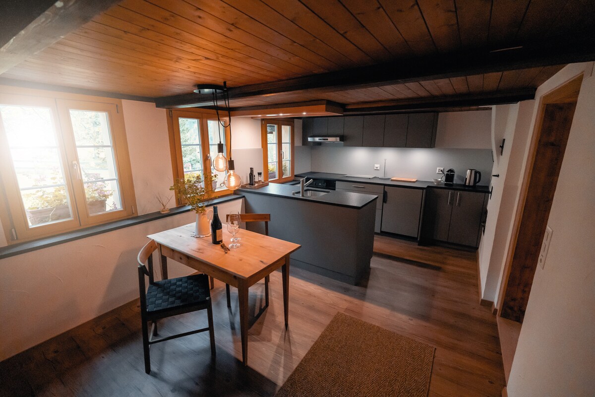 The perfect place for those seeking peace and quiet and lovers of nature and beautiful spaces. This exclusive apartment is located on the top floor of a completely renovated detached farmhouse. Hiking or skiing … shopping or sightseeing in Lucerne or Interlaken ... or simply enjoy the lake in its shimmering colors. Surrounded by countless opportunities to discover Central Switzerland. The place for a break, vacation or your perfect honeymoon. 4 Mountainbikes (shared) Air conditioner (Summer)
