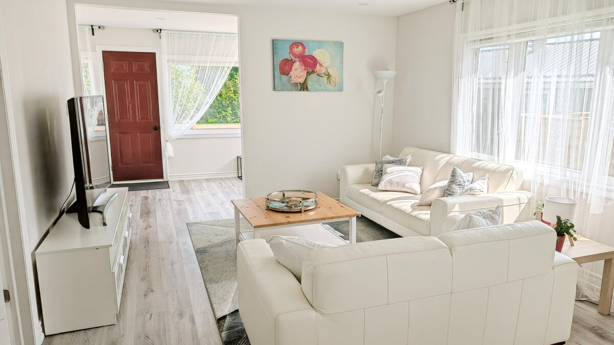 Minutes from RVH Hospital, Georgian College, Hwy 400, and the Barrie Waterfront. Clean, newly renovated, main floor of home in a quiet neighborhood. Your family will be close to everything when you stay at this centrally located place. Brand new tv in every room. Air mattress available by request. PLEASE inform us if you would like to use the couch as a bed so we can provide you extra linen. Thank you ☺️ Please note during WINTER months we can ONLY accommodate 2 cars.