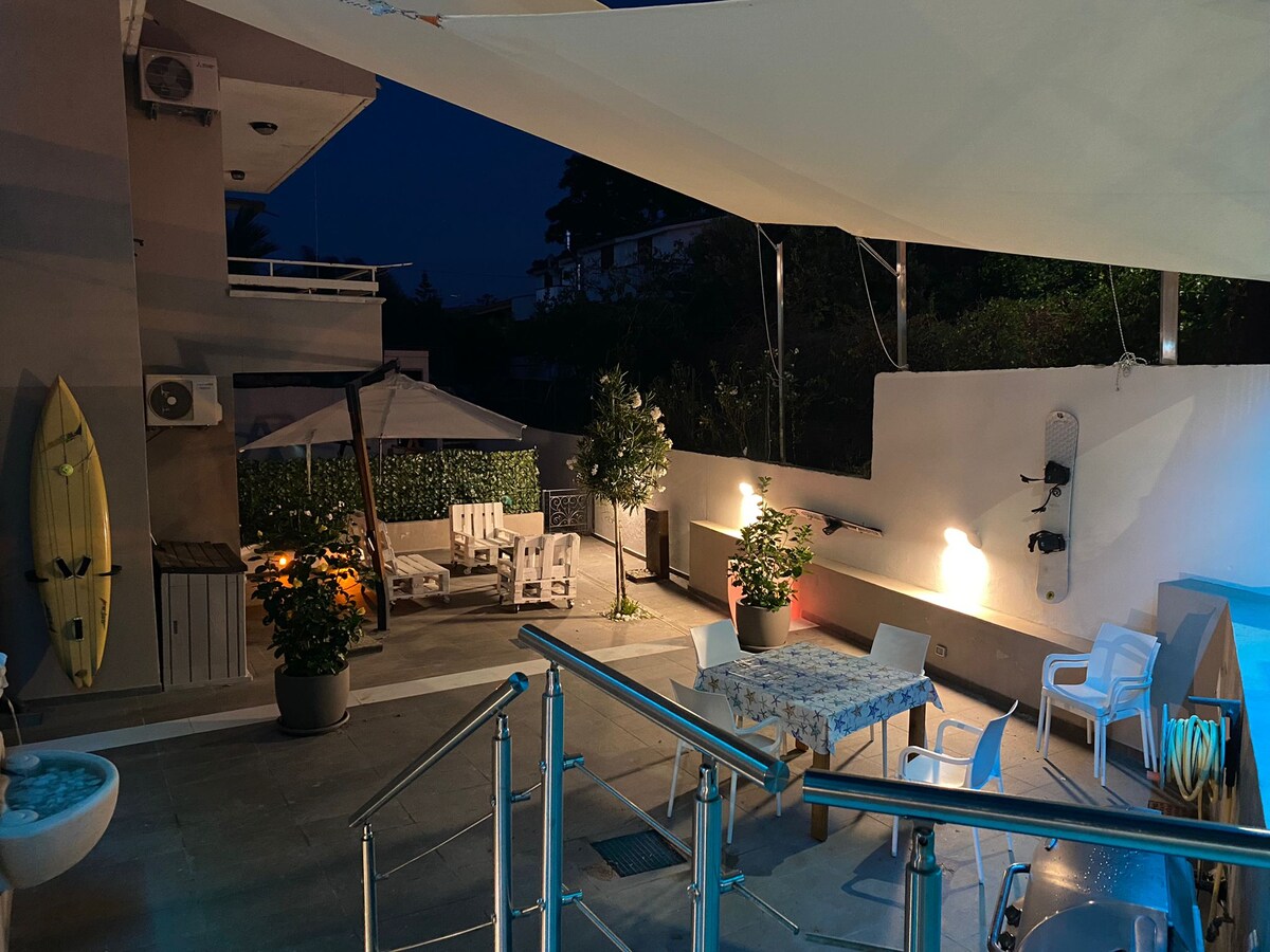 Only 300 meters to the white sandy beach! Enjoy a piece of paradise with unobstructed Ionian sea views and the soothing sound of sea waves in a sea-facing private garden and an upstairs balcony of this first line seafront luxurious town home! 2004 upgrades include new interior and exterior paint throughout, new air conditioning units, new smart TV, new outdoor awning, new outdoor dining patio set, and new sun loungers!