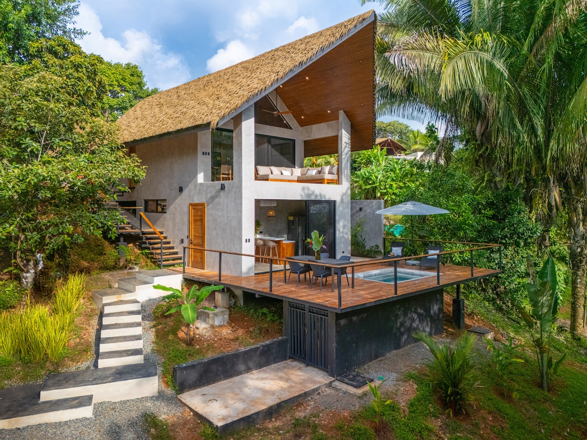 Perched high in the trees, this romantic two-story Bali-style home offers stunning views of Isla Ballena, Caño Island, and the Osa Peninsula. Unwind in the outdoor bath with a warm soak under the stars or a refreshing cold plunge surrounded by jungle sounds. Private yet close to town, it’s the perfect retreat for couples seeking connection, nature, and a touch of magic. Designed for couples seeking something truly special, the home invites you to slow down and connect with nature—and each other