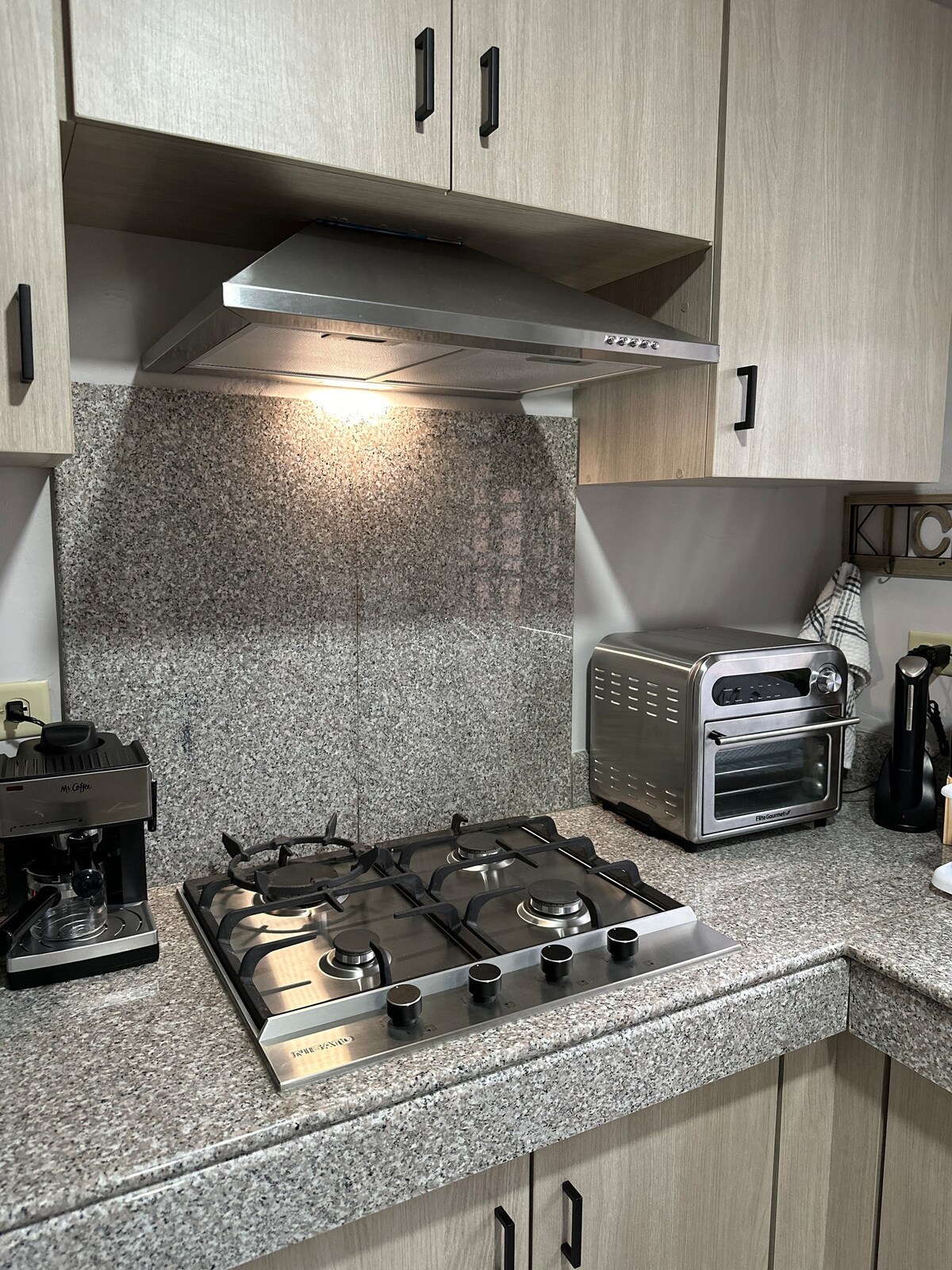 Suite with separate entrance: covered parking, double bed, bathroom, kitchenette and desk. Your personal space in the heart of David. It has split air conditioning, a ceiling fan, a TV with Netflix access, free WiFi internet, blackout curtains, a water reserve tank, hot water, a kitchenette equipped with an electric stove, a refrigerator, a coffee maker, a microwave, and basic utensils. It does not have a laundry room, electric generator, or soundproofing.