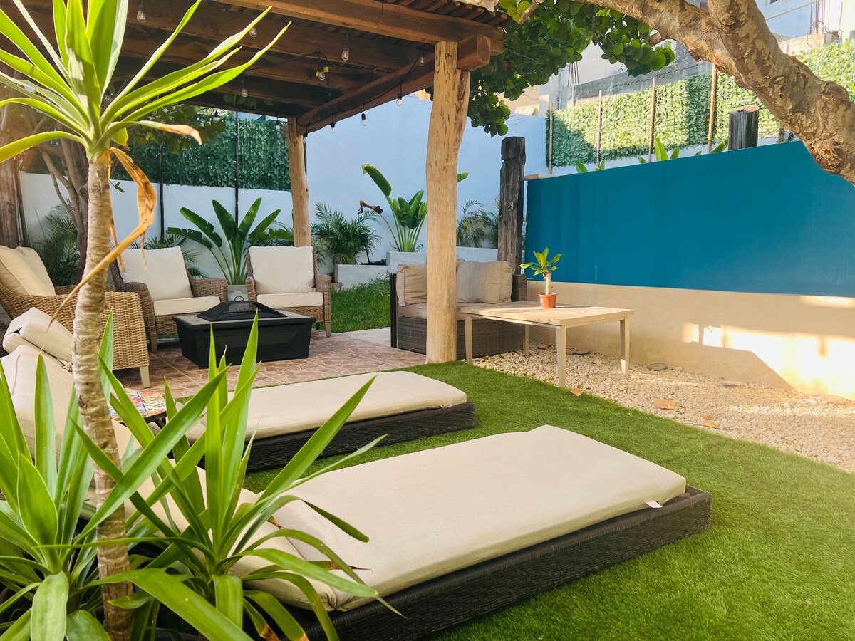 Beautiful luxury house with Mayan and hardwood style. A authentic Prehispanic experience. The suite has a equipped kitchen , bathroom, bedroom with smart TV ,and closet, private terrace and garden and a large shared pool chlorine free. Hermosa suite de lujo con acabados en maderas preciosas y estilo Maya. Una autentica experiencia mexicanca estilo prehispanico. Cuenta con cocina equipada,baño completo,recamara con Smart TV y closet,terraza y jardin privados y gran alberca sin cloro , compartida