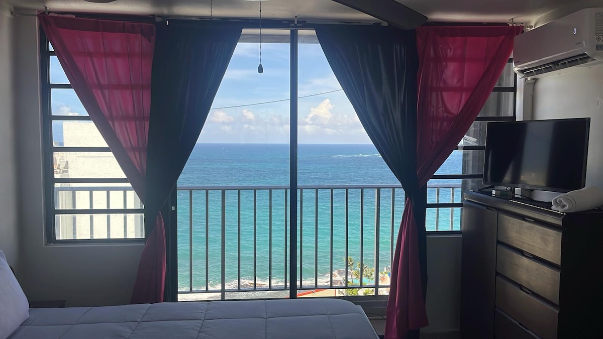 Come and visit! 🌊 Bright, remodeled ESJ Towers studio with two comfy beds, ocean‑breeze balcony, and marble‑look floors. Wake up steps from Isla Verde Beach, enjoy a fully equipped kitchenette, fast Wi‑Fi, and amenities—perfect for couples, families, and remote workers seeking a beachfront escape. Feel the excitement as you open the door to your airy, coastal‑chic studio. Sip coffee on the balcony, unwind with streaming TV, then fall asleep to the sound of the waves.