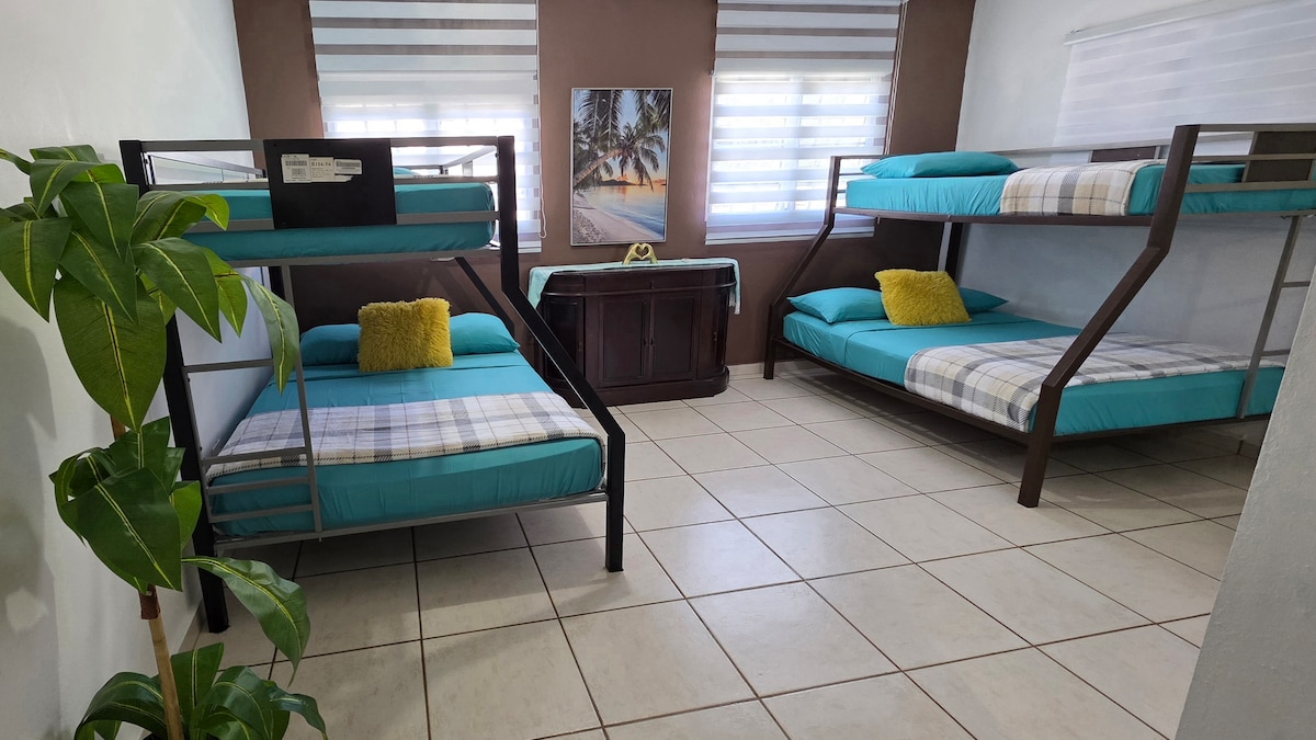 Disfruta de la sencillez de este alojamiento súper céntrico. El area es tranquila completamente privada, con marquesina privada para 2 vehículos. Tiene 2 habitaciones grandes con 2 camas queen y 2 camas full. Cocina equipada completamente. Sala y comedor, para el uso común. televisores en las habitaciones y sala. Internet alta velocidad para trabajar en armonía y comodidad. Perfecto para grupos de 8 personas o menos. podrán ir con la satisfacción de que estarán en un lugar comodo y agradable.