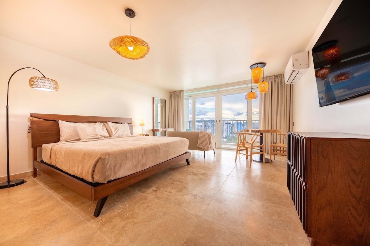Million-dollar view—BOOK NOW! Proudly 100% Puerto Rican (and Veteran) owned. 🇵🇷 10th-floor studio w/ stunning sunsets. 5 min from SJU airport, <1 min walk from lobby to the beach! ✅ 1 free garage parking ✅ Self check-in ANYTIME after 3 PM ✅ Free luggage storage ✅ 24/7 market 10-min walk ✅ Lobby café & bar 🧺 Paid laundry in basement ❌ No pool ❌ No early check-in/out